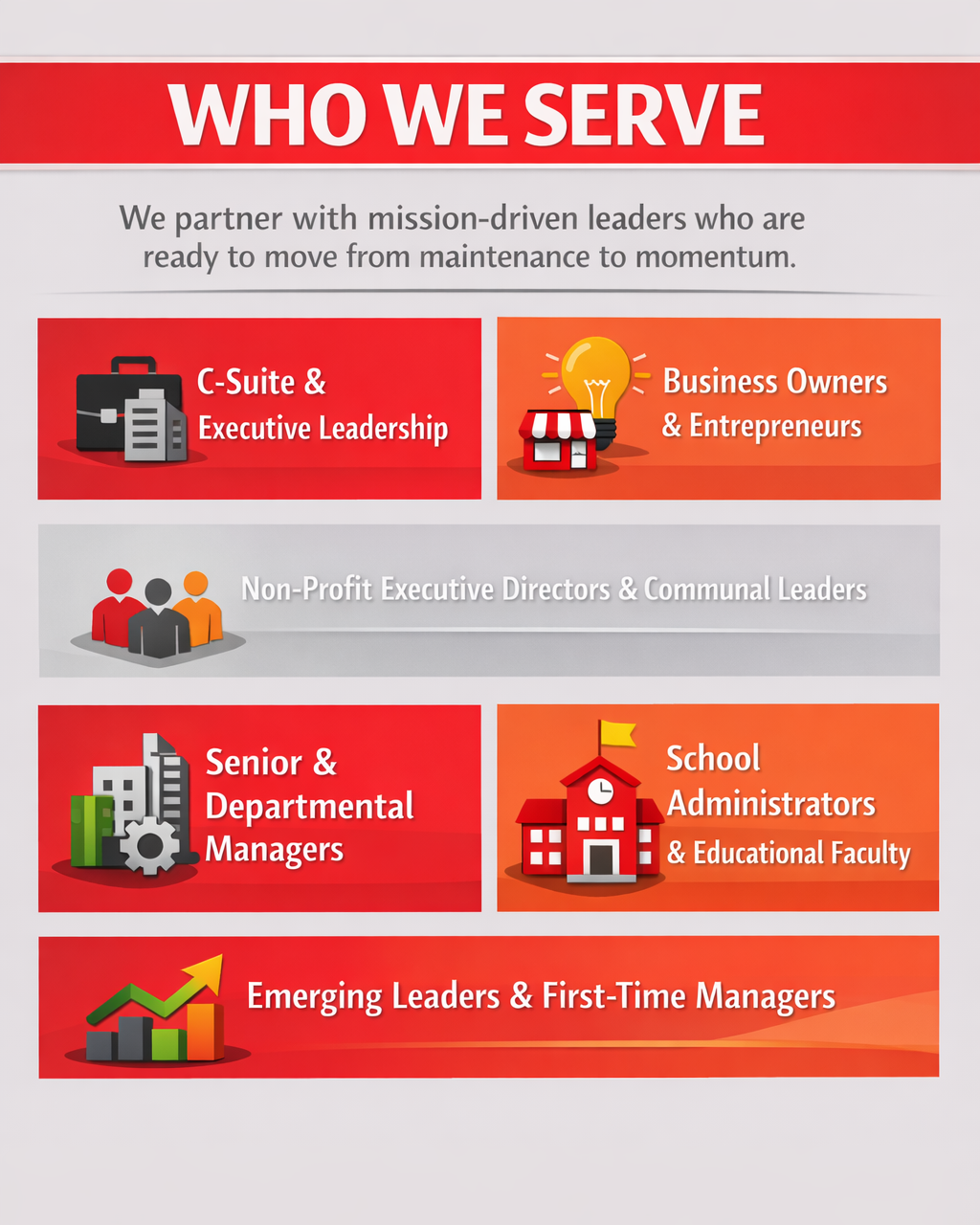 Coaching, consulting, talks, and training for leaders and teams who want to move from maintenance to momentum.