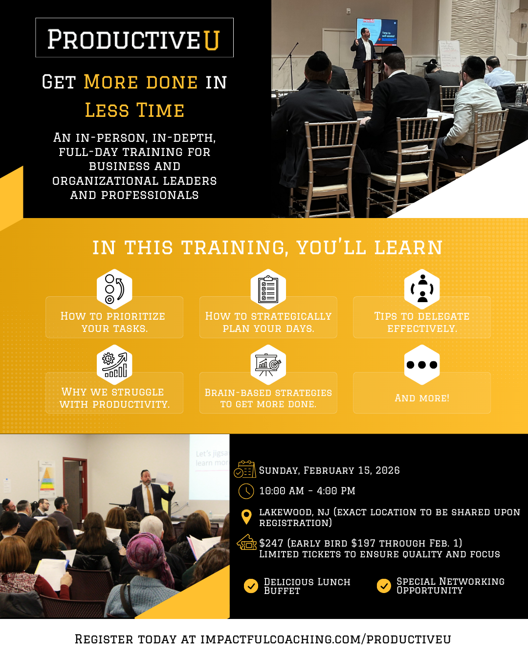 This workshop is ideal for business owners, entrepreneurs, professionals, and their teams. That said, anyone who wants proven, practical strategies to improve productivity and focus will benefit from attending.